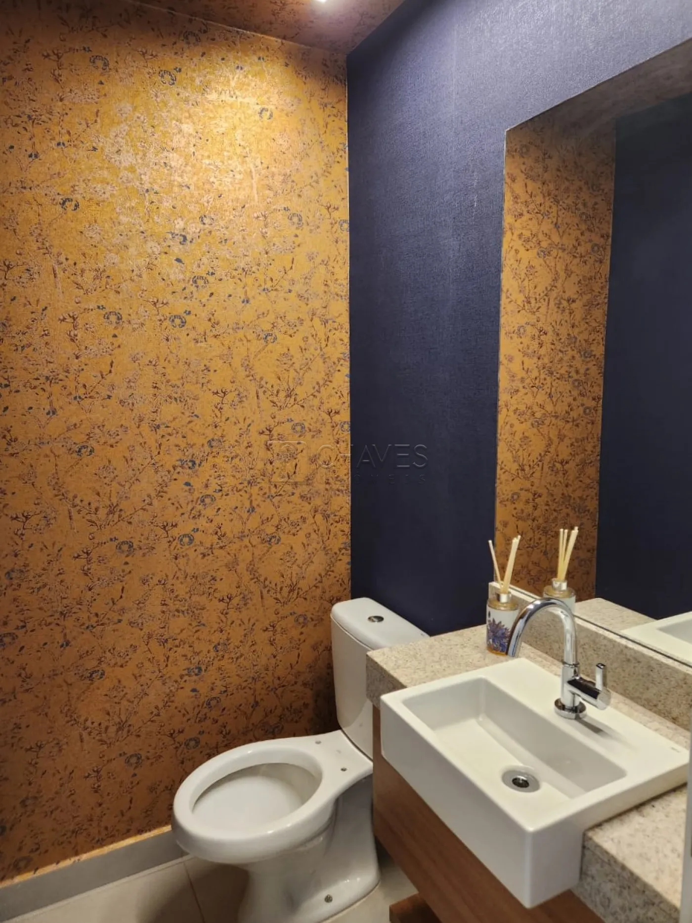 - 1 lavabo (com espelho, papel de parede e armário)