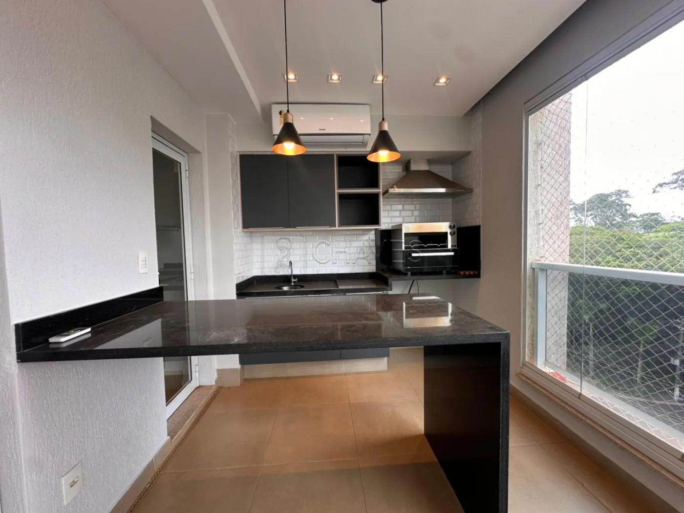 -sacada gourmet com churrasqueira e fechamento em vidro
