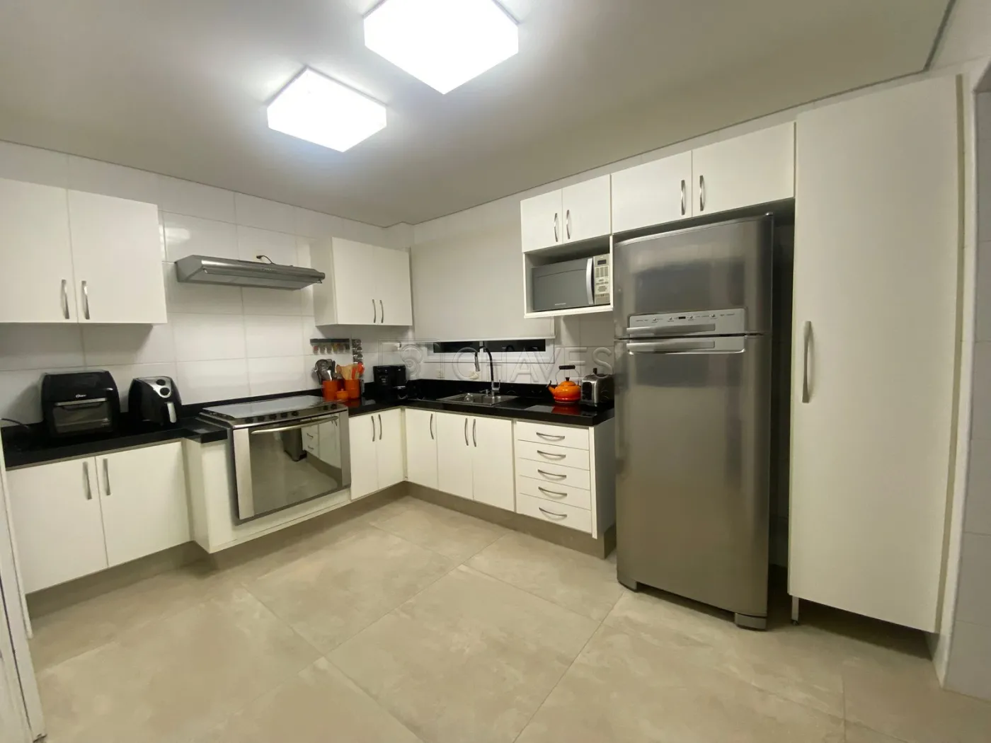 - Cozinha com armários e fogão de 6 bocas